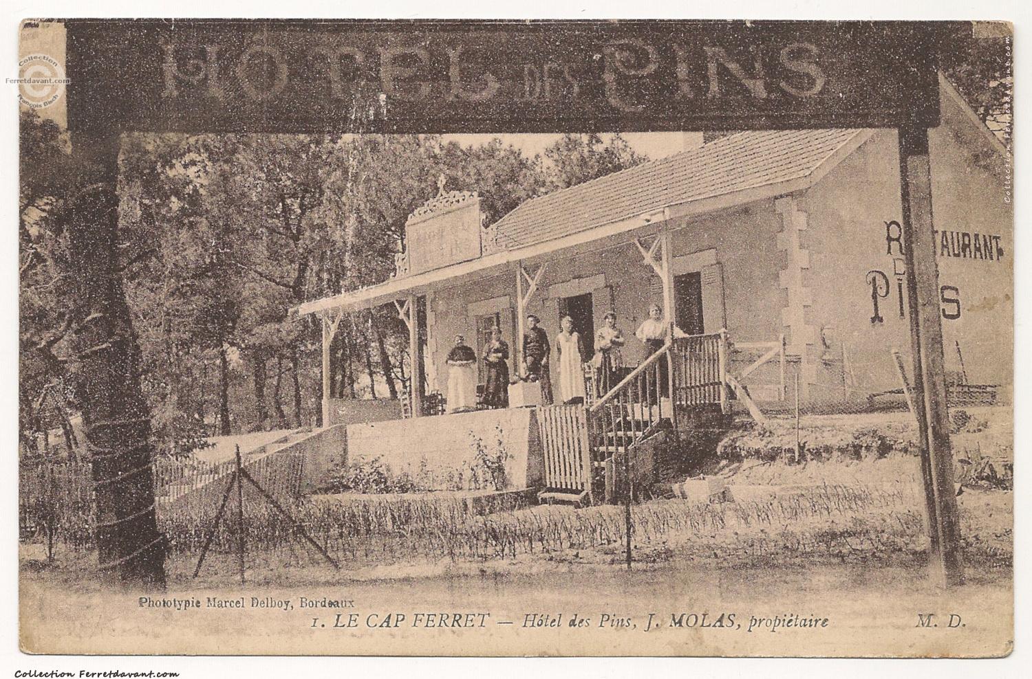 L'hôtel des Pins est construit au début du siècle par le charpentier Julien Molas (entre autre fabricants de cercueils). En 1937, l'hôtel sera repris par Arthur et Séréna Arcagni puis par leurs enfants Paul et Huguette