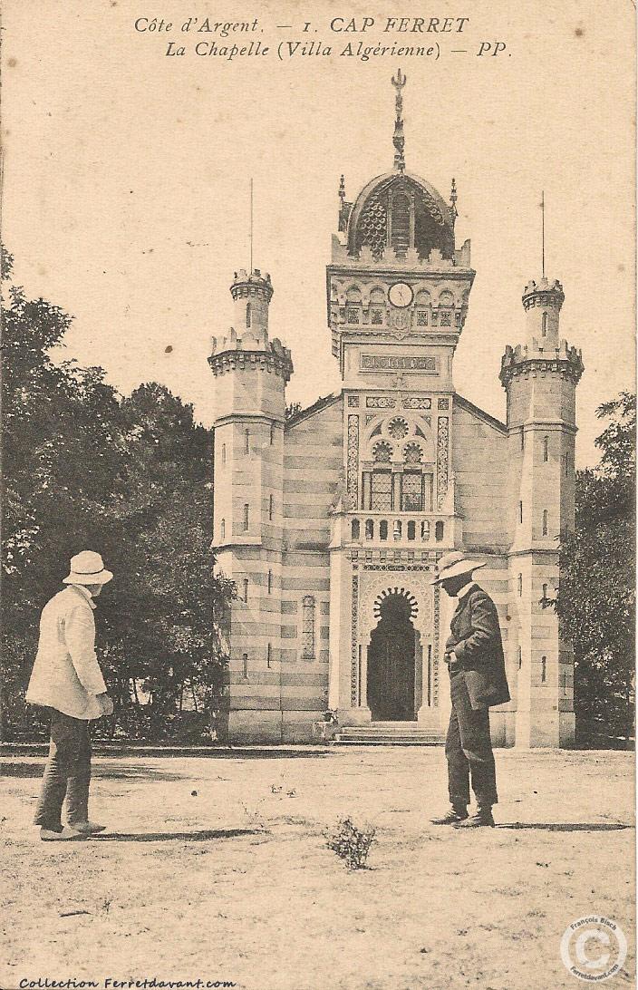 A gauche, Frantz, le fils Lesca et à droite son beau-frère, Adolphe Bordes. Tous deux posent devant la chapelle familiale de la villa Algérienne (Chapelle Sainte-Marie du Cap). A la mort de Léon Lesca, c'est Frantz, qui habite au Maroc, qui hérite de la villa Algérienne qu'il vendra en 1953 à des restaurateurs. Adolphe Bordes, marié en juillet 1890 à Marthe Lesca, est l'héritier d'une des plus importantes compagnies d'armateurs du XIXe siècle. Une flotte de plus de 40 voiliers !