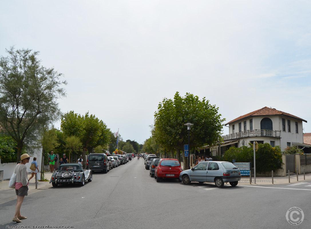 Le café du centre sur l'actuel boulevard de la plage. Le vieux phare du Cap-Ferret est face à nous. Remarquez le dessin sur le mur du café avec les deux queues de billard et l'inscription Billard Russe. C'est qu'il était connu ce billard ! Il est d'ailleurs toujours là aujourd'hui mais utilisé uniquement par son propriétaire et ses amis. Remarquez enfin les rails au sol qui commencent à être ensevelis. C'est la ligne du tramway Bélisaire / La pointe qui traversait à l'époque tout le Ferret jusqu'à la pointe Lavergne (aujourd'hui pointe Hortense). La construction de la dernière portion de route en 1934 et l'arrivé de la voiture lui sera fatal.