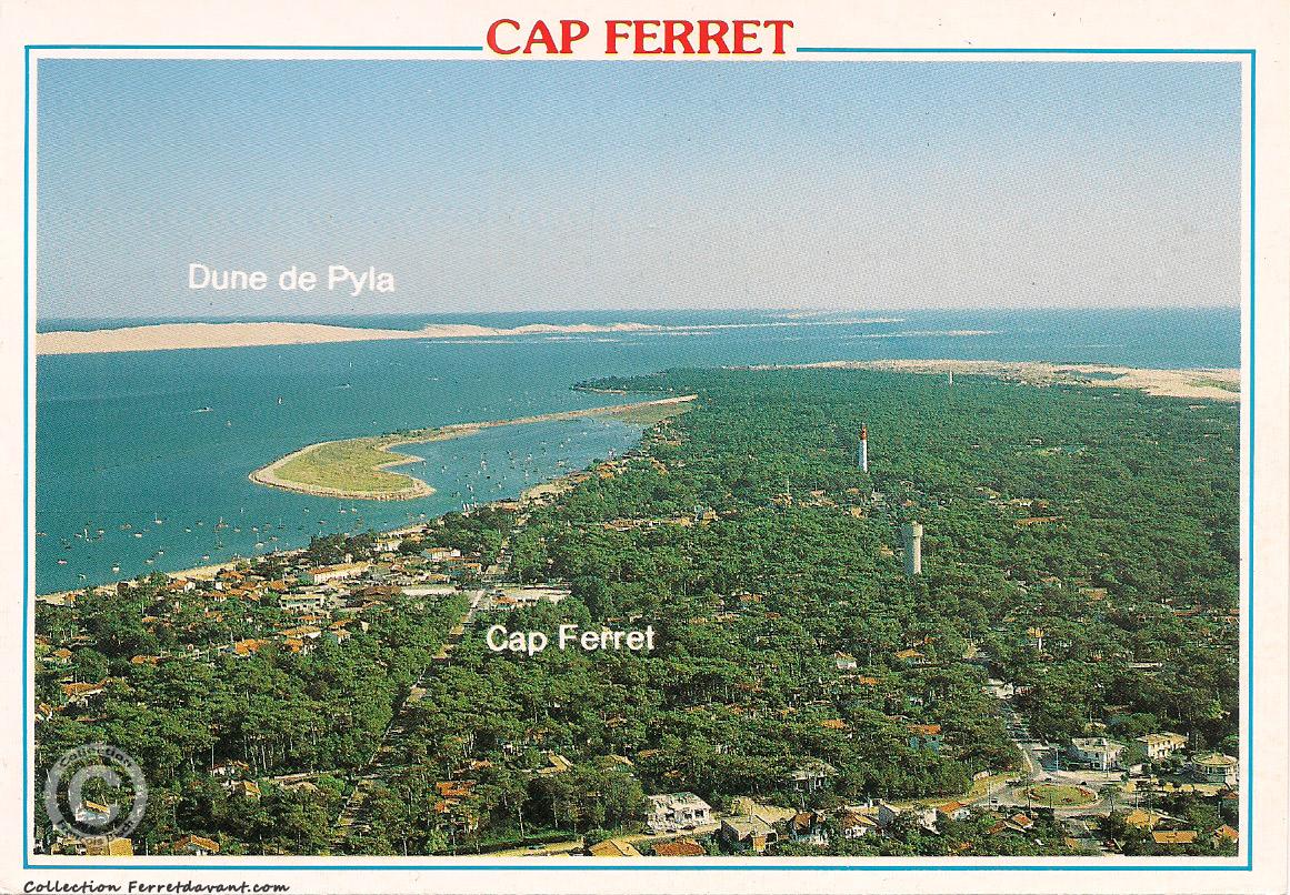 Vue aérienne du centre du Cap Ferret avec en bas de photo, l'avenue de l'Océan et la discothèque Le Lagoon tenu par Lily Fargues pendant les années 1990 (bâtiment blanc). Au fil des ans, cette bâtisse à connu de nombreux propriétaires : Tout commence en 1952 avec l'entrepreneur de maçonnerie, Emmanuel Vena, qui créé "L'Iceberg" où, avec son épouse Julia, il vend des glaces spécialisées italiennes. Ensuite, c'est devenu "Le Casino" puis "Le Saroff", puis le "Chris Marc", puis le "Galaxy" et enfin "Le Centaure" tenu par Robert et Lily Fargues (Source : La pointe du Ferret). Contre le Centaure, le fils de Robert, Didier, tenait un fast Food. Début 1980, Robert créé "Le new Centaure" sous le nouvel ensemble immobilier La Forestière et rebaptise l'ancien "Centaure" en "Green Mango" puis en "Lagoon".