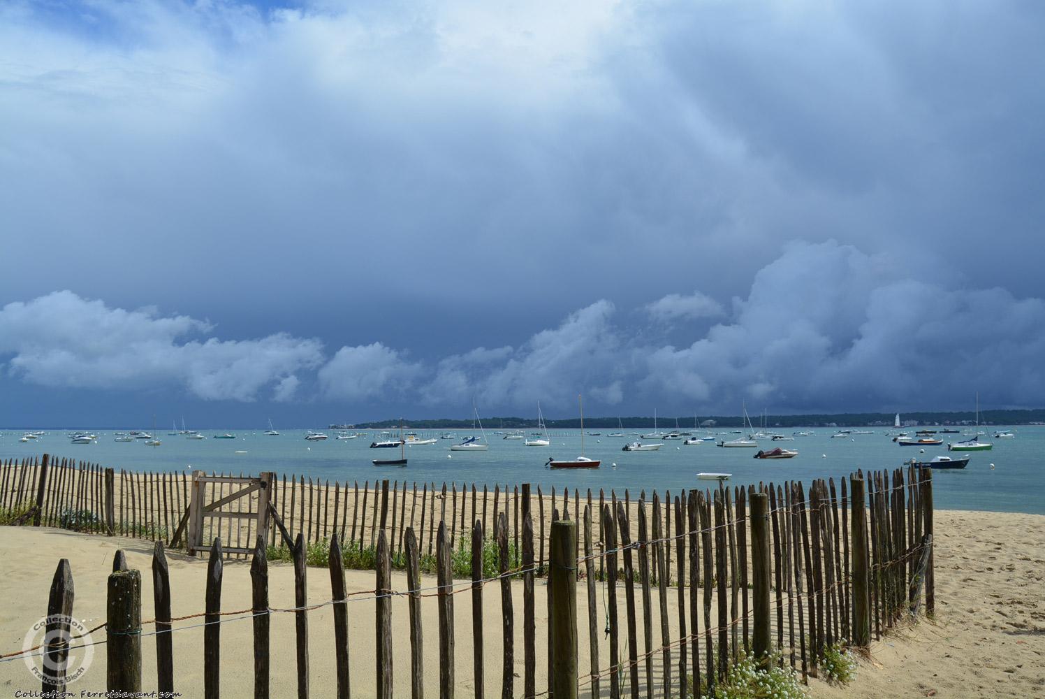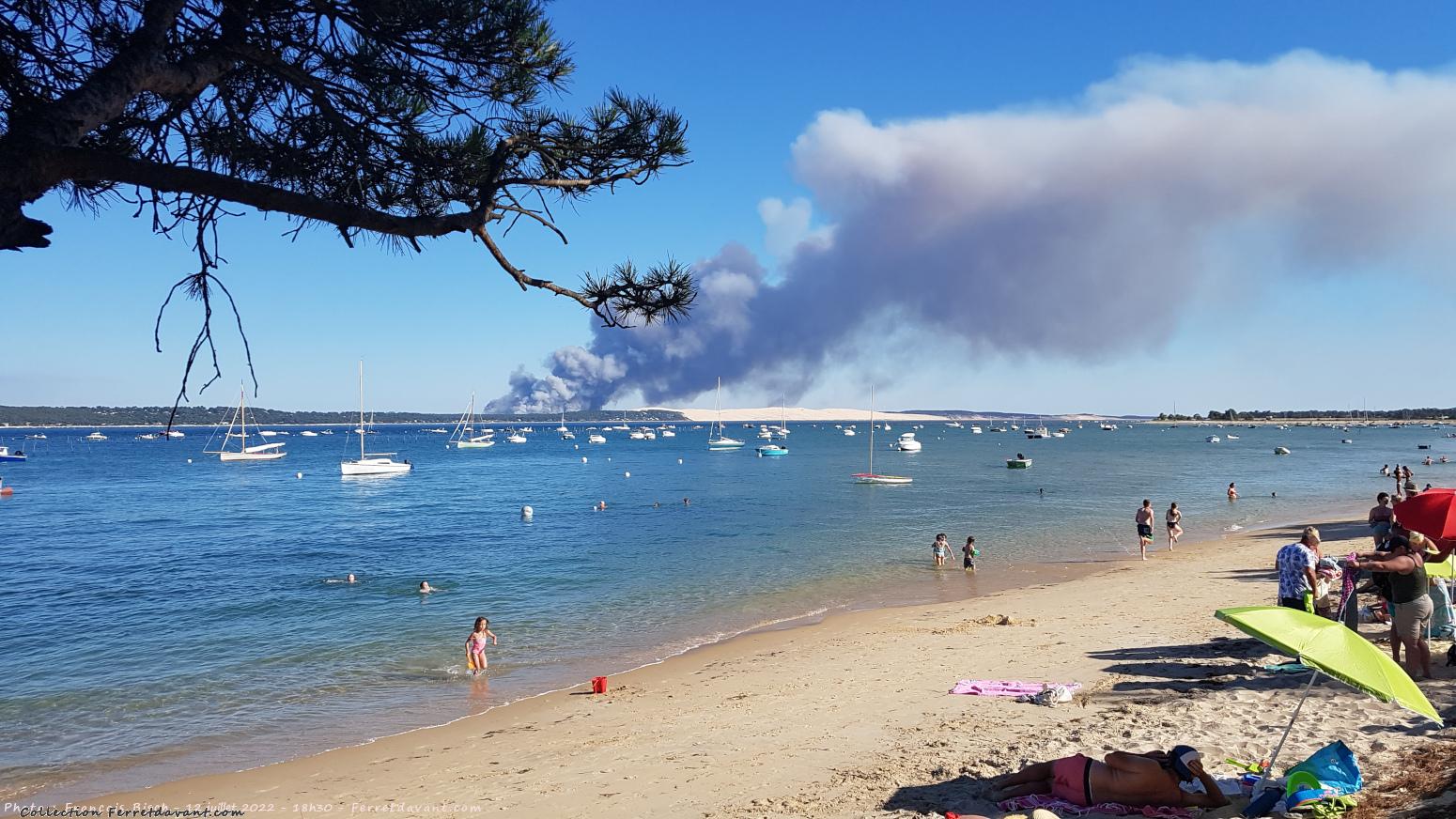 Photo personnelle du début de l'incendie de forêt à La Teste de Buch vu depuis la plage devant la place de l'église du Cap Ferret le mardi 12 juillet 2022 à 18h30. Le feux durera 11 jours. Quartier suivant » Centre - Place du marché