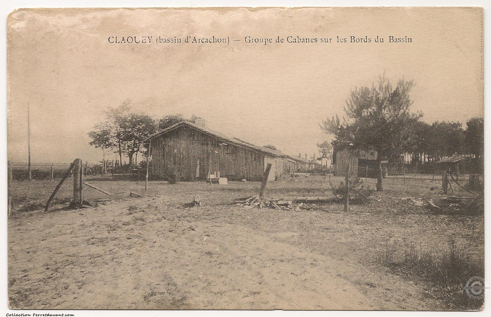 Village de Claouey - Groupe de cabanes sur les bords du Bassin. Probablement du côté du quartier Jane de Boy. Contactez-moi si vous connaissez cet endroit.