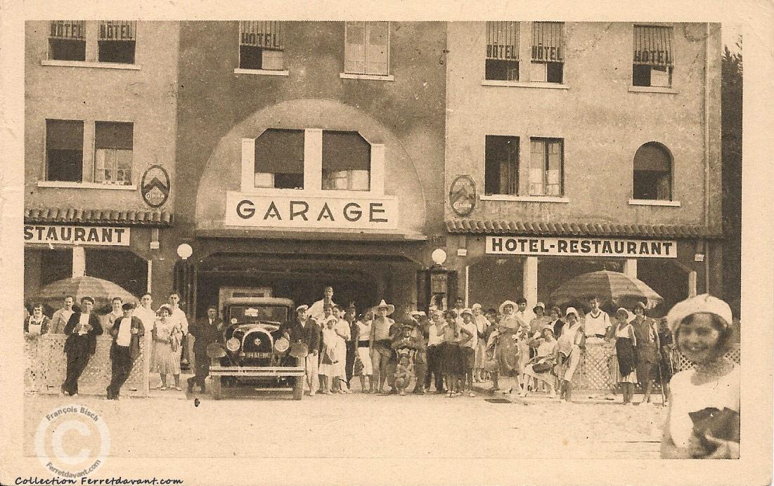 Notez le texte à gauche : "Garage avec Essence, Huile" et celui de droite : "L'air marin le plus tonique".