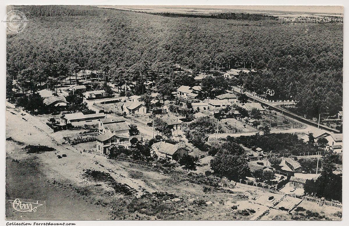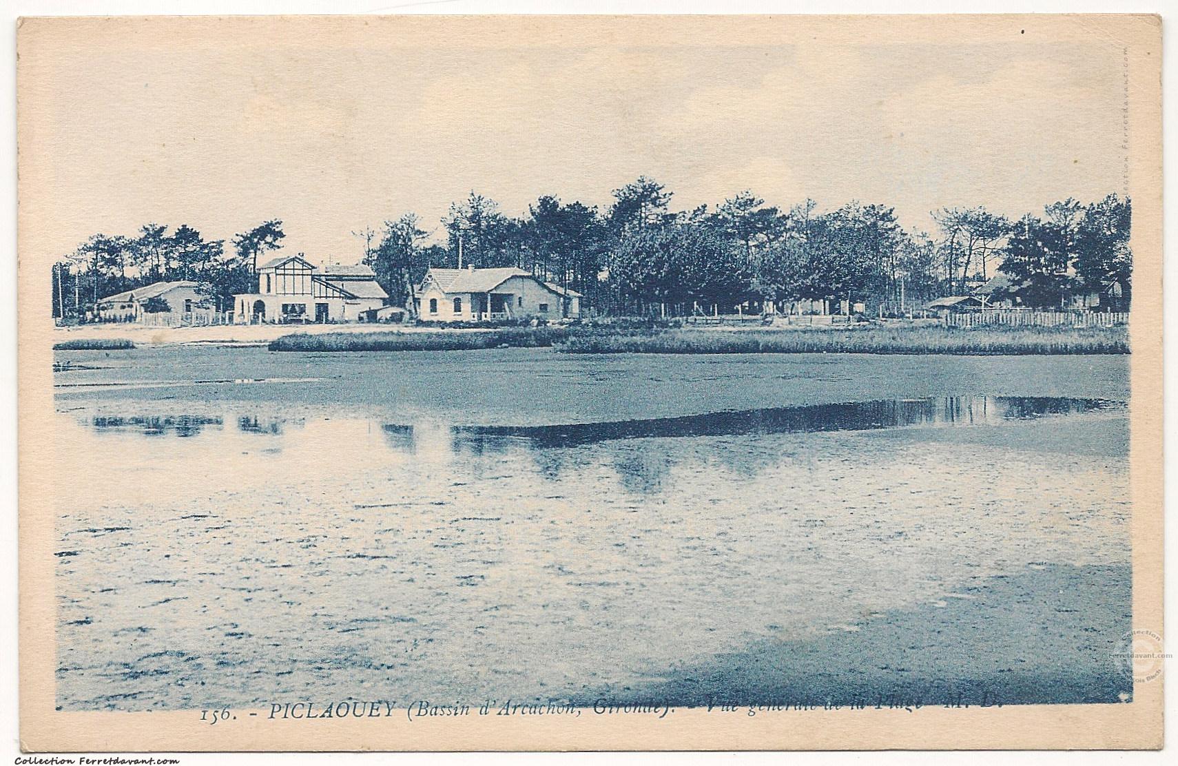Une partie du quartier de la Bastide et, à gauche, les premières villas du bord de mer du lotissement de Pi-Claouey encore visibles aujourd'hui avenue de Piclaouey. On reconnais, de gauche à droite, la villa Bel Air de monsieur Goujon, celle de monsieur Rochet et la villa Les Hirondelles de monsieur Coiquil. Derrière la villa de monsieur Rochet, on aperçoit les toits de la résidence de monsieur Auriat [Source : Luc Dupuyoô - Livre n°8]