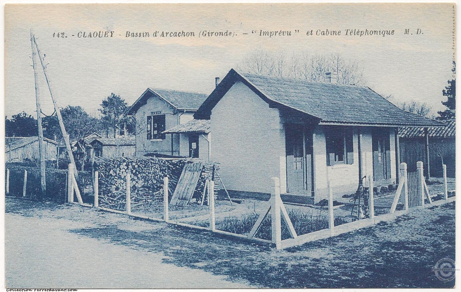 Les premières stations téléphoniques sont pour certaines installées dans des commerces privés comme on le devine sur le deuxième bâtiment aujourd'hui disparu. Mais la villa Imprévu elle, est toujours là, à l'angle de l'avenue Le Toumelin et de l'avenue Henri Guérin. A noter que Paulette, l'expéditrice et pensionnaire de La Pignada, raconte : « qu'un couple de client du caviste venait de tuer un petit chat pour le manger » et de rajouter : « Bah, s'ils ont faim, ils ont raison, surtout qu'on a rien a donner aux chats. Seulement, je te dis que je n'en mangerais pas pour une fortune! » Nous non plus Paulette!