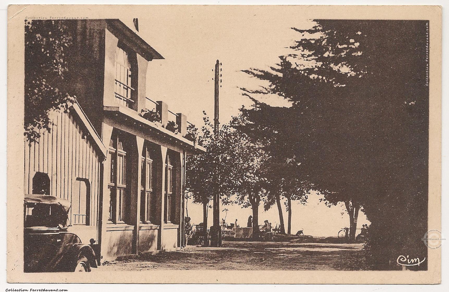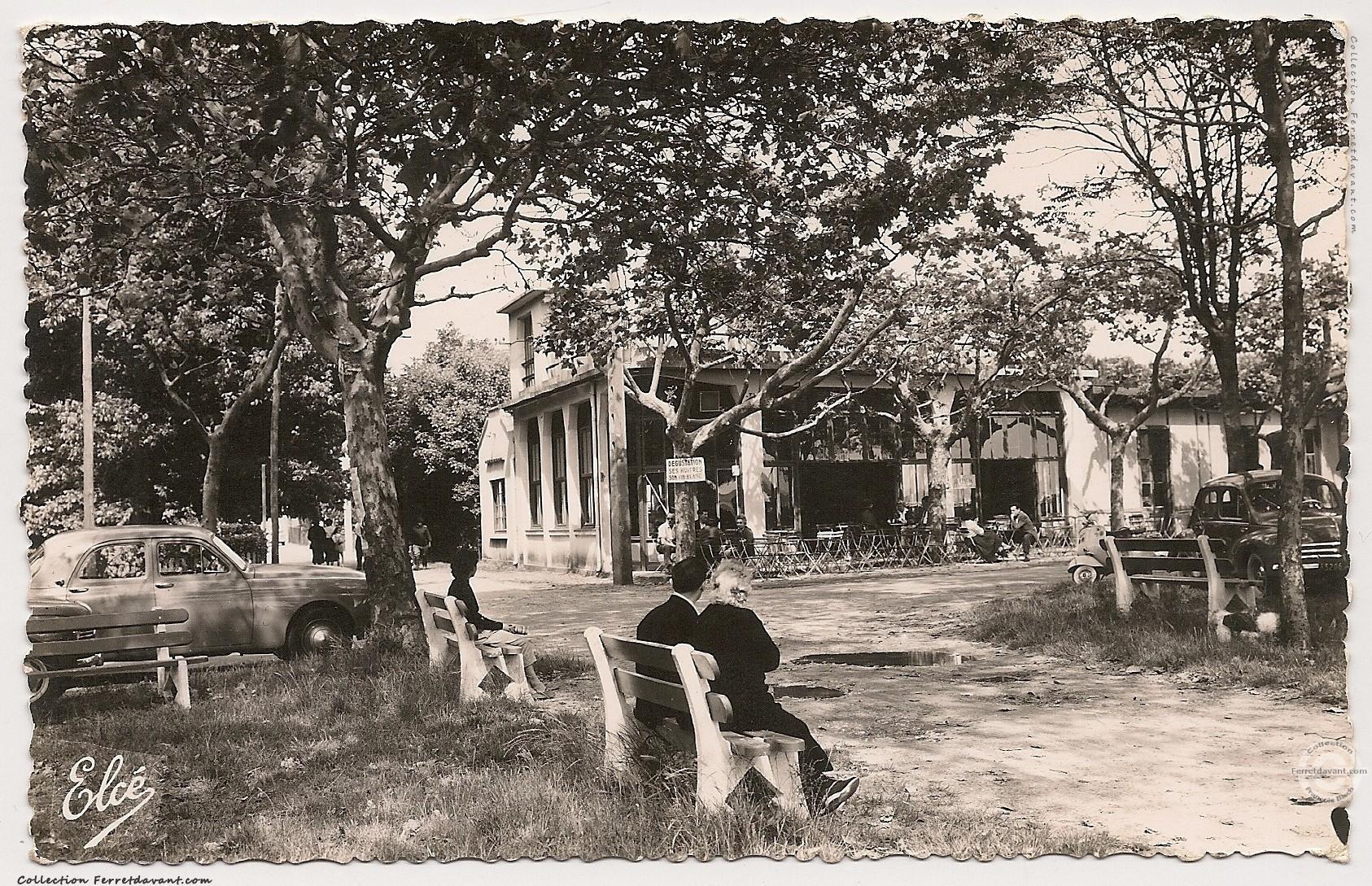 Le bar restaurant Chez Alcide dans les années 1960. La photo est prise de dos au Bassin. Le restaurant est toujours là aujourd'hui au bord de l'eau mais les bancs public ont disparus. En 2023, les propriétaires ont eu la bonne idée de repeindre la façade en lui donnant un caché d'époque. Une réussite. Succès oblige, une réservation est fortement conseillée.