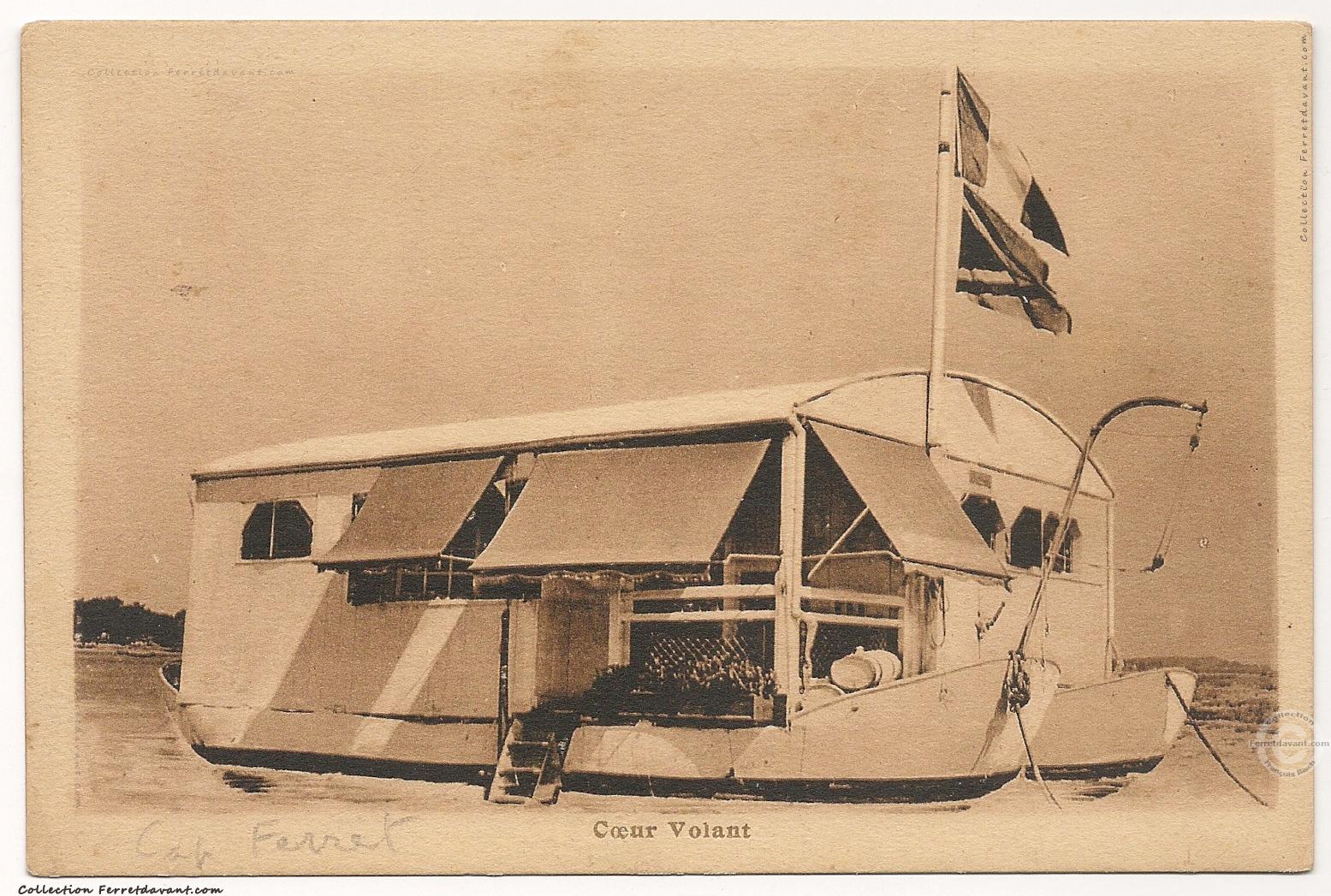 Ce bateau ponton d'hébergement "Le Cœur Volant" est construit dans la Lugue du Cap-Ferret par l'écrivain français, André Armandy, qui, à l'occasion de ses séjours Ferretcapiens écrivit en 1930 un roman dont l'action se situe sur le Bassin ; "Cribleurs d'Océan" (éd. Alphonse Lemerre). Une rue de la pointe du Cap-Ferret porte d'ailleurs son nom, la rue André Armandy (voir sa villa Paradenia). Ces bateaux ponton étaient très utilisés dans les années 1930 car non soumis à l'impôt.