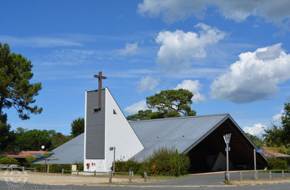 La chapelle Notre Dames des Pins de Petit Piquey construite de 1971 à 1973. Sur une idée de l'architecte François Pichet, elle représente une tente ouverte sur le levant du soleil. Le clocher, en forme de triangle, symbolise une voile mue par le vent. Son architecture est principalement en bois. Remarquez qu'à l'époque, la chapelle était un simple toit posé sur le sol sans portes, ni murs. Les paroisses de la presqu'île de Lège-Cap Ferret sont au nombre de cinq : l'église Saint-Pierre à Lège, l'église Notre Dame des Pins à Piquey, la chapelle de Piraillan, la chapelle algérienne à l'Herbe et enfin, l'église Notre Dame des flots au Cap-Ferret.
