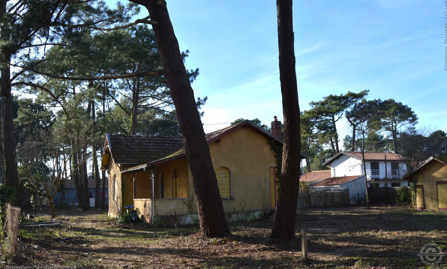 La villa Moustic de l'avenue de Piclaouey à Claouey. J'ai eu beaucoup de mal à retrouver cette villa à partir de cette simple carte postale car elle était jusqu'à sa destruction cachée derrière une végétation très dense (voir mes photos ci-contre). Remarquez, sur la carte, la magnifique pompe à eau, aujourd'hui disparue.