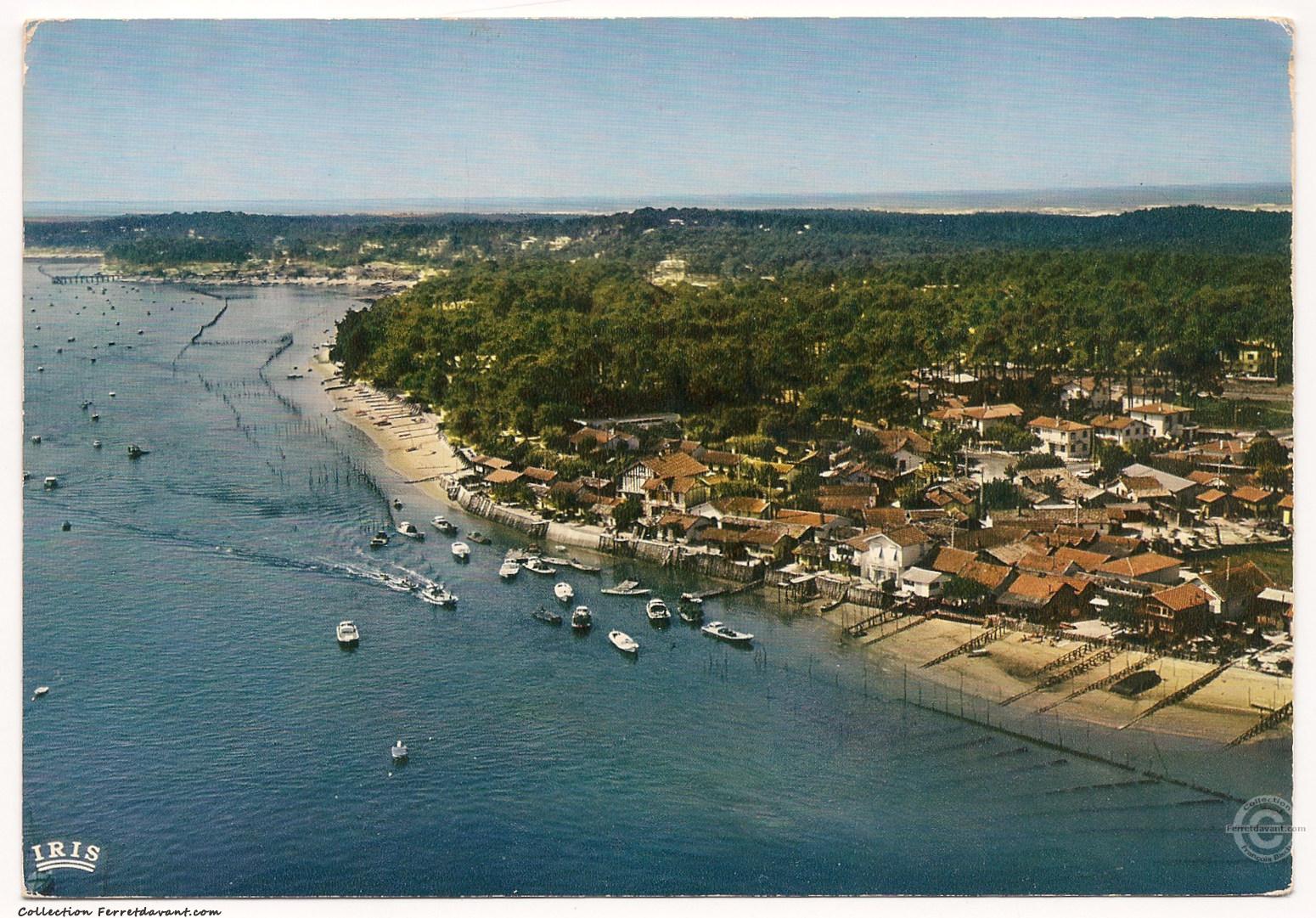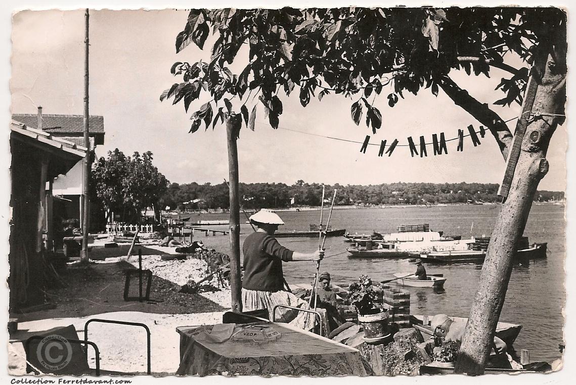 Le village et le port de Piraillan en 1971. Le matin, les ostréiculteurs travaillent sur les parcs au milieu du bassin. A partir de midi, ils nous accueillent dans les cabanes de travail transformées en dégustation. Terrasse les pieds dans l'eau et huîtres tout juste sorties du bassin d'eau claire, une formule délicieusement simple. Tu choisis ta cabane en te promenant dans les ruelles du village (Source : le Cap Ferret de Sophie Juby)... Mais chuuuut. Laissons les touristes s'entasser au Ferret :-) Au deuxième plan, la jetée du Canon.