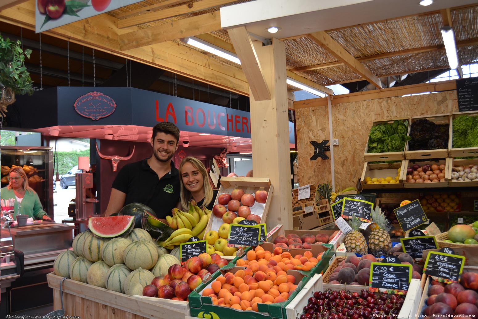 Photo personnelle du marché de Piraillan au mois d'août. Le Marché couvert et en extérieur de Piraillan vous accueille tous les matins du dernier samedi de juin au premier dimanche de septembre de 8h à 13h.