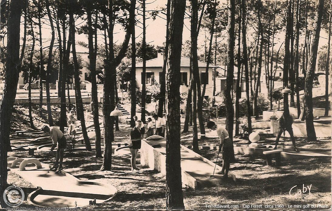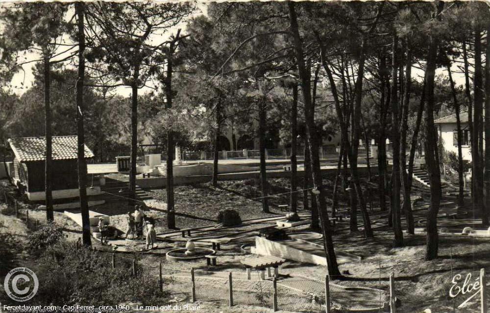Le mini-golf du Phare dans les années 1960 avec son fameux phare en miniature. Ce mini golf sera détruit dans les années 80 et remplacé par une résidence de villas (Les hameaux du Phare). On raconte qu'un Ferretcapien à récupéré le mini phare en béton peint. Mais qui?