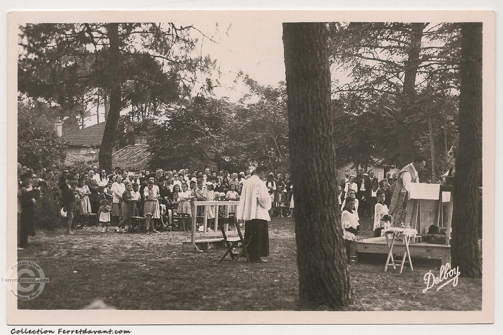✉ [17/11/2020] Native de Piquey et y vivant toujours je viens de regarder quelques cartes postales. C'est une belle collection, toutefois je pense que celle représentant la messe en plein air ce n'est pas à La Chapelle des Jacquets mais peut être à la Pignada car les toitures environnantes ne sont pas celle de la petite chapelle. Françoise M